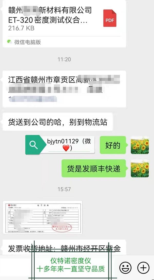 在新材料行業中,儀特諾ET-320固體密度測試儀已經得到了廣泛應用。最近,我們欣然收到了來自一位新客戶的付款,這標志著我們又贏得了一位新材料行業的合作伙伴。