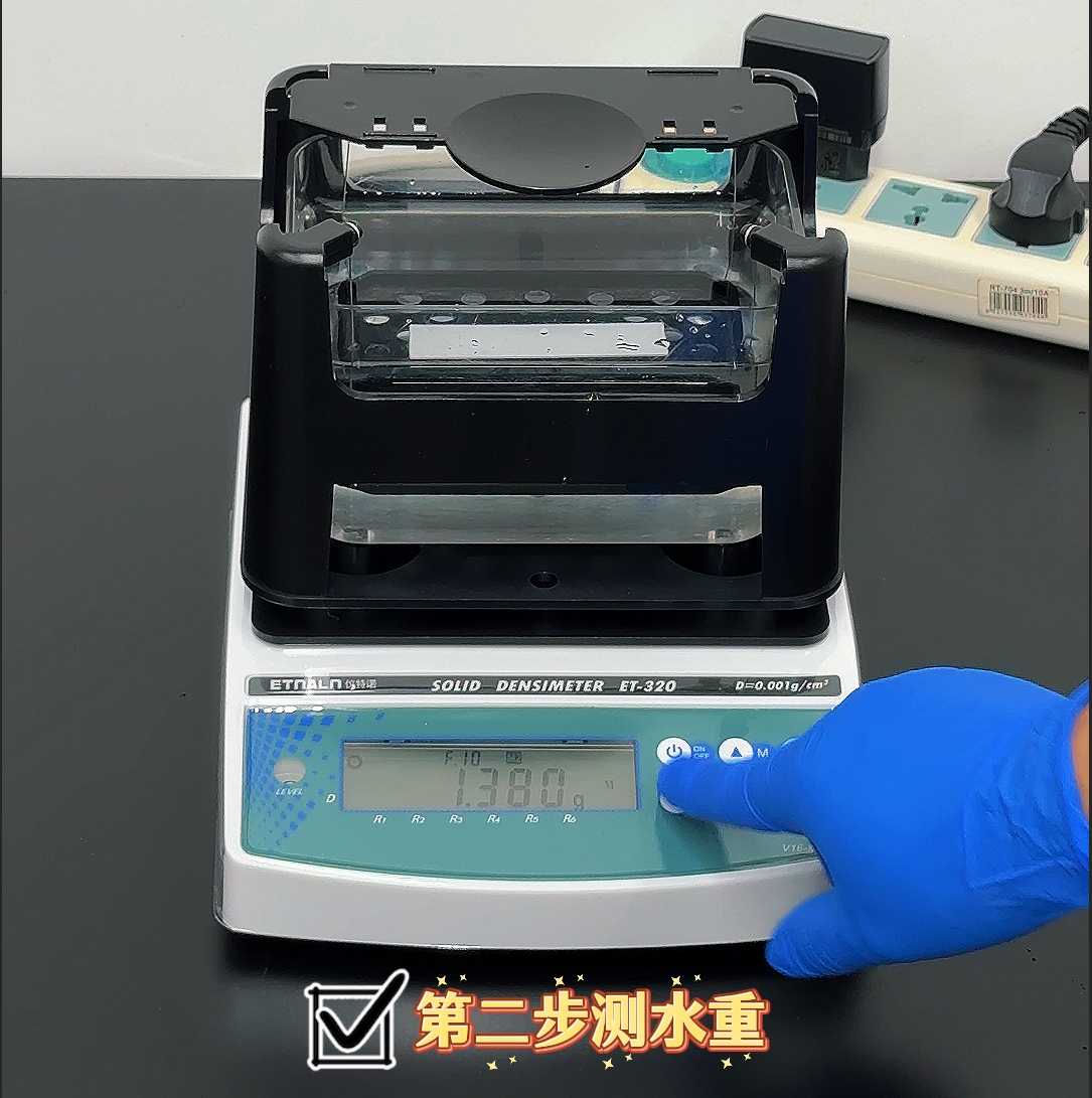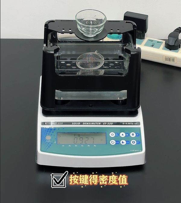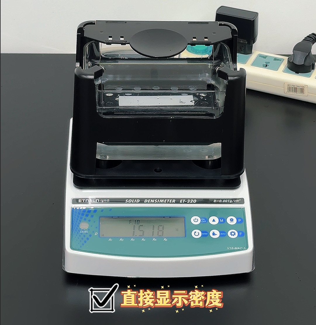 儀特諾ET-320系列電子密度計,基于阿基米德排水法的原理,結合高精度傳感器和智能算法,2步快速測量各類固體產品和材料的密度。