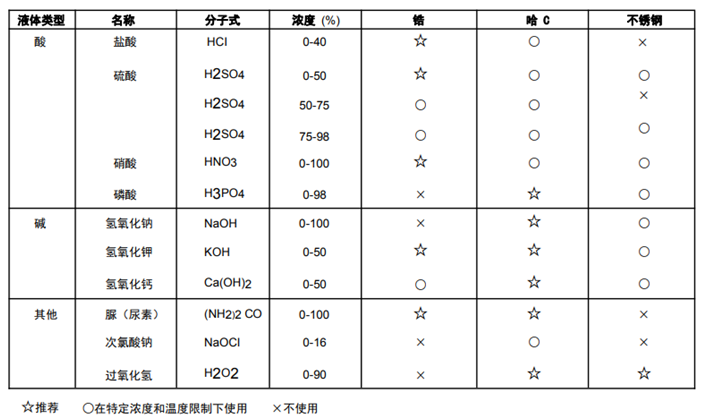 可測(cè)液體及材料兼容性: