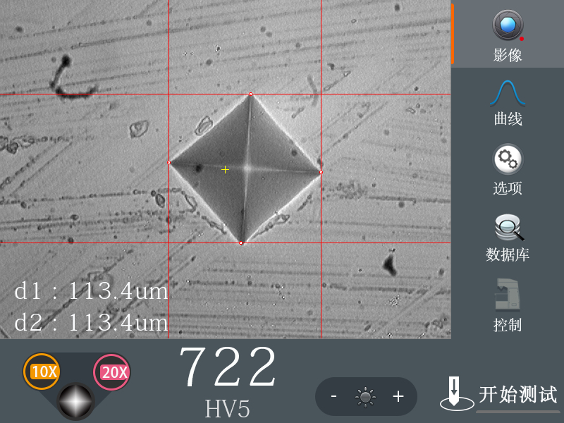 ? 嵌入式影像技術取代傳統測量目鏡,使用攝像頭+顯示屏模式,壓痕圖像,顯示屏直接顯示